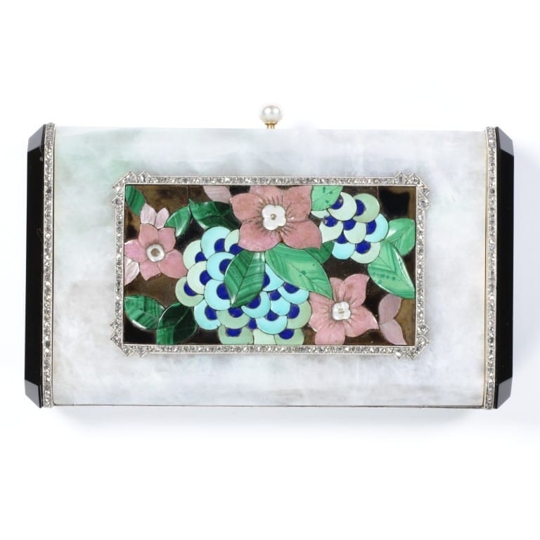 Le prime borse utilizzate prettamente come vezzi iniziano ad apparire alla fine degli anni ’20 del 1900. Come la Vanity case di Lacloche Frères datata 1926 circa, letteralmente un piccolo gioiello in oro, diamanti, madreperla e turchesi che poteva contenere solo piccoli oggetti come sigarette o trucchi e che le donne altolocate portavano a mano.