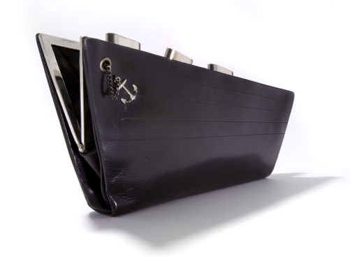 Per omaggiare i propri passeggeri durante il viaggio inaugurale del 29 maggio 1935, il transatlantico Normandie, considerata la nave più grande e veloce del mondo, regalò a quelli della prima classe una cluch bag che recava le forme della nave stessa, sui toni del nero e dell’argento, con una piccola ancora che faceva da decorazione.