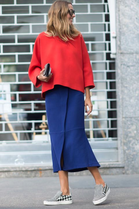 Altro evergreen è l’abbinamento di blu e rosso. Bon ton ed elegante si presta per gli outfit più sofisticati. Ma blu vuol dire anche jeans ed ecco quindi che maglione rosso e jeans a vita alta sono uno degli outfit più belli della stagione invernale.