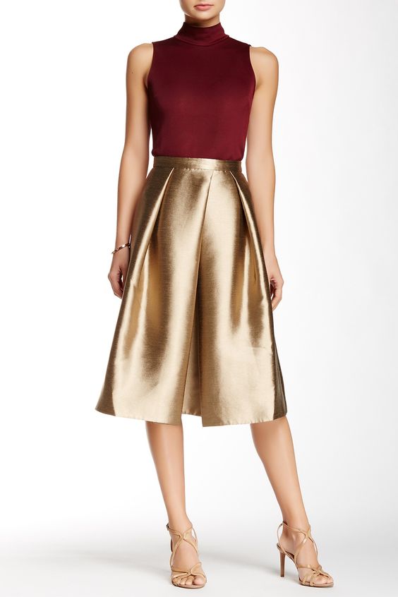 Per un outfit super natalizio si può optare per un outfit oro e rosso. A un tubino rosso si possono abbinare delle décolleté dorate e accessori. Molto bello anche l’accostamento tra top rosso e pantaloni dorati. Questa combo è perfetta anche per il make-up festivo: labbra scarlatte e ombretto dorato sono ideali per incarnare al meglio l’atmosfera festiva.