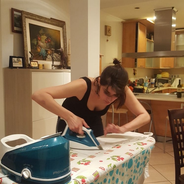 Canottiera, capelli raccolti sommariamente, asse da stiro in pole positione e una camicia candida da stirare alla perfezione: è questa l’immagine più recende di Elisa Isoardi, che venerdì scorso ha ironizzato sul fatto che il suo eccitante venerdì sera si riduceva a stirare camicie nella sua bella cucina.