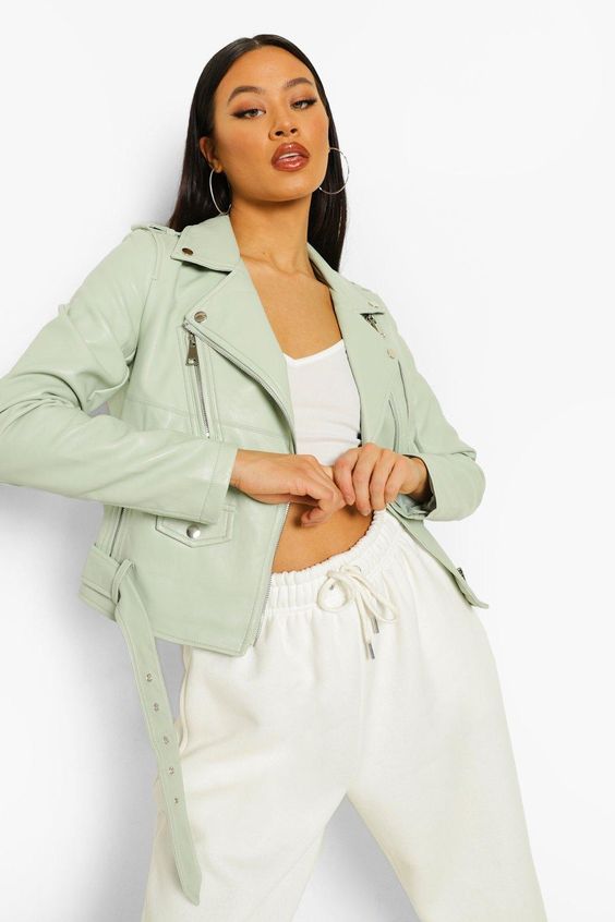 Anche Boohoo punta sulla freschezza e sulla novità. La giacca biker color verde acqua è super particolare e di tendenza. L’abbinamento perfetto? Con un vestito bianco super romantico e ai piedi dei clogs, ma anche con dei pantaloni super comfy e un crop top.