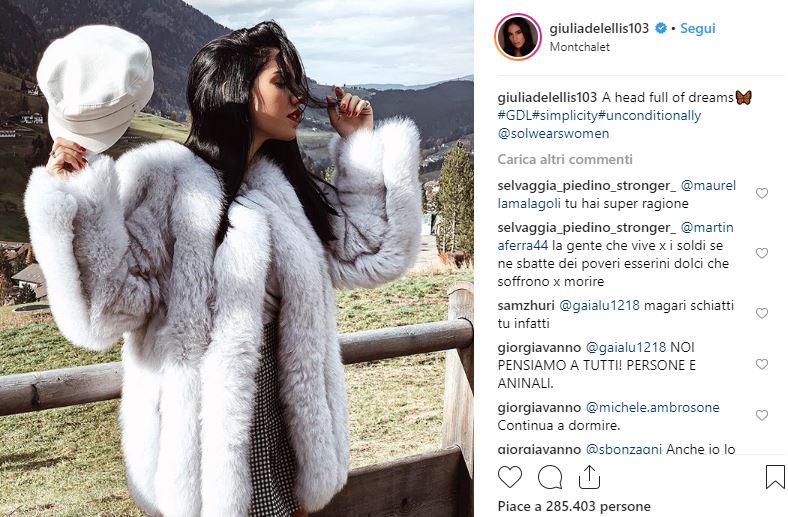 Giulietta ha ricevuto davvero molte critiche e questa volta il suo vasto gruppo delle Bimbe di GDL possono fare ben poco. Si può difendere l’indifendibile? No, anche perché l’ha indossata per consigliarla ai suoi fan, per cui non potrebbe neanche giustificarsi dicendo di non sapere che la pelliccia fosse vera, perderebbe di credibilità. Come ha reagito la De Lellis a tutti i commenti che le sono arrivati? Semplice, li ha ignorati. Ormai, la ragazza che rispondeva ai messaggi e alle domande dei suoi fan, non c’è più. Giulia è troppo impegnata e già da tempo non ha più il rapporto iniziale che aveva con i suoi seguaci. Forse è anche normale perché i suoi follower sono diventati tanti, ma, ogni tanto, parlare quando non si è a favore di telecamere ed interagire con i comuni mortali le farebbe bene. Almeno, credo che sia più che doveroso dare spiegazioni a quanti la stanno criticando. Non dico che avrebbe dovuto mandare un messaggio a ogni fan, ma pigiare il ditino e girare una, dico una, Instagram Stories per dare la sua opinione avrebbe dovuto farlo. Scommetto che se i suoi follower seguissero l’appello di chi ha chiesto di toglierle il ‘segui’, la De Lellis si fionderebbe a rispondere a tutte le accuse, una per una.