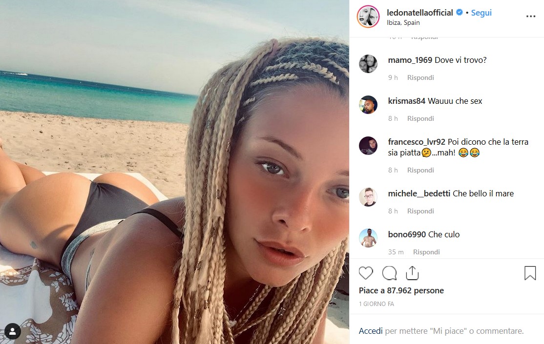 Un selfie, per l’esattezza. La ragazza è sdraiata su un telo mare a pancia in giù. Indossa un costume da bagno che lascia in bella vista il suo lato B e lei non fa di certo nulla per nasconderlo. Anzi. Sullo sfondo si vede una spiaggia di Ibiza e il mare, ma l’attenzione dei followers è sicuramente ricaduta altrove.