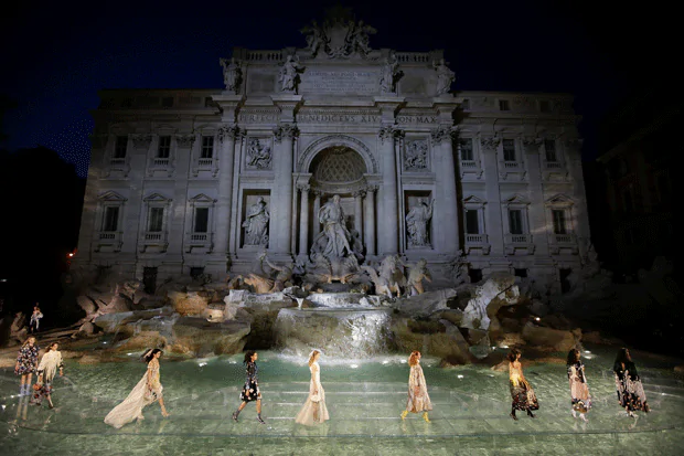 Infatti, i nuovi capi appaiono come catturati ed estrapolati da una fiaba, ispirati ai racconti di fate. L’azienda italiana ha presentato la sua collezione sull’acqua, perché ha contribuito al restauro del mitico monumento romano, dandogli nuovo splendore. Qui il video della sfilata.