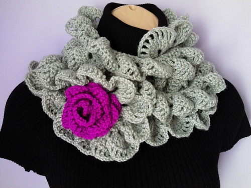 Per le più esperte o per chi ama cimentarsi in nuove sfide, è naturalmente possibile personalizzare la sciarpa che si sta creando, aggiungendo delle decorazioni floreali. Potrete realizzarle mentre lavorate la vostra sciarpa oppure lavorare le decorazioni a parte e cucirle sopra la sciarpa, una volta ultimata.