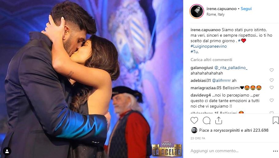 Il primo scatto social di coppia è stato pubblicato su Instagram proprio dall’ex tronista. I due piccioncini appaiono più felici che mai e anche molto affiatati. La fotografia è stata scattata loro mentre si avvicinano per scambiarsi un passionale bacio e, a didascalia, si legge: “Ci sono cose che non si possono spiegare… Complice”. Neanche a dirlo, il post di Luigi ha ricevuto oltre 302 mila mi piace e tantissimi commenti. Anche Irene ha voluto urlare al mondo il suo amore per il nuovo fidanzato e, utilizzando uno scatto della scelta, che li ritrae proprio nel momento del bacio, scrive: “Siamo stati puro istinto, ma veri, sinceri e sempre rispettosi… Io ti ho scelto dal primo giorno”. Insomma, il Mastroianni e la Capuano sembrano essere davvero innamorati e pronti a viversi ogni singolo giorno di questa loro storia d’amore. Non possiamo fare altro che augurargli che la loro relazione possa durare nel tempo e ringraziarli anche per aver portato a Uomini e Donne una ventata di semplicità, quella che i telespettatori vorrebbero vedere ad ogni trono.