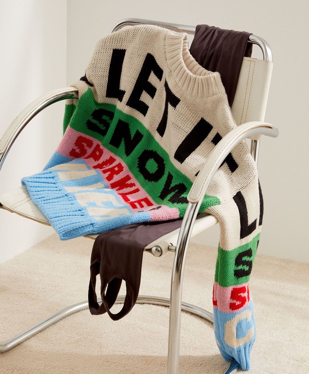 H&M sceglie invece di distaccarsi dai modelli tradizionali ma non dalle scritte tematiche. Un esempio è appunto questo capo che non riporta l’accostamento di colori che ci aspetterebbe da un maglione natalizio, ma il tema è centrato dalla scritta “let it snow”.