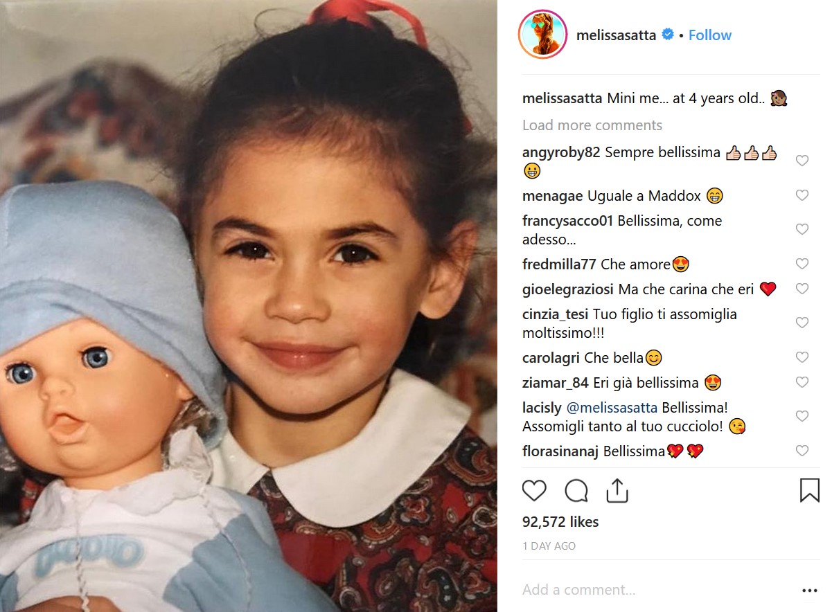 Per gli italiani Melissa Satta rimarrà sempre una ex Velina di Striscia La Notizia. Eppure lei ne ha fatta tanta di strada in TV, si è anche sposata con Kevin Prince Boateng e hanno avuto uno splendido bambino, Maddox. Ha partecipato a tantissimi programmi televisivi andando decisamente oltre il ruolo di Velina ed ha saputo ritagliarsi la sua fetta di fans che la seguono costantemente sui social. Ed è proprio sul suo profilo Instagram che Melissa Satta ha voluto fare un regalo speciale ai followers: ha pubblicato una fotografia di lei da piccola.