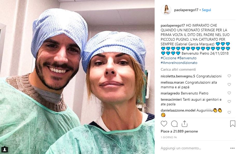 Giulia Carnevale, la sua primogenita, ha messo al mondo Pietro, nella giornata di sabato 24 novembre e il parto è andato benissimo. La neo mamma è la figlia che Paola ha avuto dal matrimonio con Andrea Carnevale. La ragazza, di soli 26 anni, è fidanzata con Filippo Giovanelli e la nascita del bimbo è la gioia più grande che potevano desiderare. La Perego per annunciare ai suoi fan il lieto evento ha pubblicato un dolcissimo scatto che la ritrae con il genero, entrambi con i classici camici da ospedale, e, a didascalia, ha scritto: “Ho imparato che quando un neonato stringe per la prima volta il dito del padre nel suo piccolo pugno, l’ha catturato per sempre (Gabriel Garcia Marquez)”.