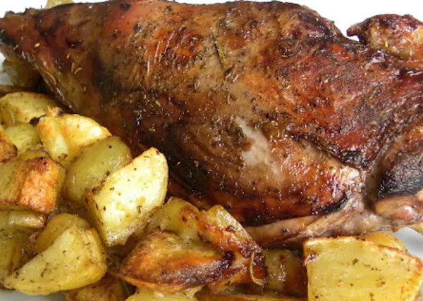 Tagliare il capretto a pezzi, metterlo in una teglia da forno, cospargerlo con abbondante olio, salare, pepare, unire il succo del limone, l’aglio e il rosmarino e far cuocere in forno a circa 190 gradi rigirandolo 2-3 volte. Nell’ultima mezz’ora aggiungere le patatine girandole per farle dorare.