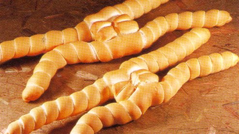 Fra i pani più rappresentativi della tavola italiana troviamo certamente i due filoncini che s’intrecciano e che prendono il nome di Ferrarese. E’ un pane ‘artistico’, il cui nome indica la città di nascita, Ferrara. Fragrante, con la crosta dura, il Ferrarese ha una sagoma inconfondibile, che richiama le stelle marine. Una variante del ‘Ferrarese’ è la cosiddetta ‘Ciopa’ veneta, pasta dura arrotolata. Nell’impastatrice (a forcella o bracci tuffanti) lavorare la farina a bassa velocità; unire lievito, malto e sale diluiti in acqua, aggiungere la sostanza grassa a scelta a metà impasto.