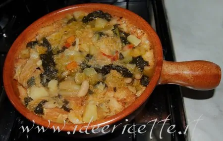 Appena i fagioli sono pronti passateli al mulinetto, versateli nella pentola delle verdure, mescolate e fate sobbollire ancora un po’. Distribuite in una zuppiera le fettine di pane tagliate sottili, versatevi sopra la minestra bollente e lasciate riposare al caldo per circa 20 minuti in modo che il pane assorba gran parte del liquido. Conditela con un giro d’olio.