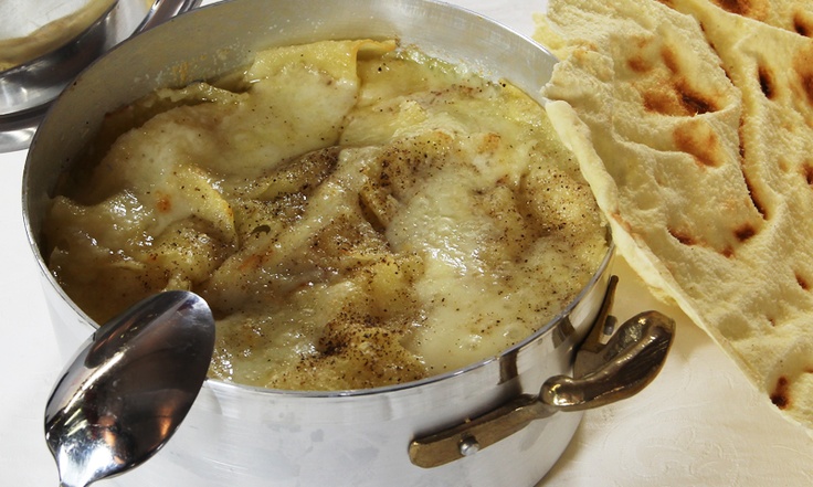 In una terrina da forno versare uno strato di fette di pane raffermo tostato al forno strofinate con aglio e unte con poco olio. Cospargerle con formaggio Bra duro grattugiato e coprire il tutto con cavolo tritato grossolanamente e stufato con poca pancetta tritata. Fare un secondo strato di pane e formaggio Bra e bagnare a filo con brodo di carne o di verdure. Porre a fuoco leggero per portare ad ebollizione il brodo e poi passare la terrina in forno caldo per 20 minuti a gratinare.