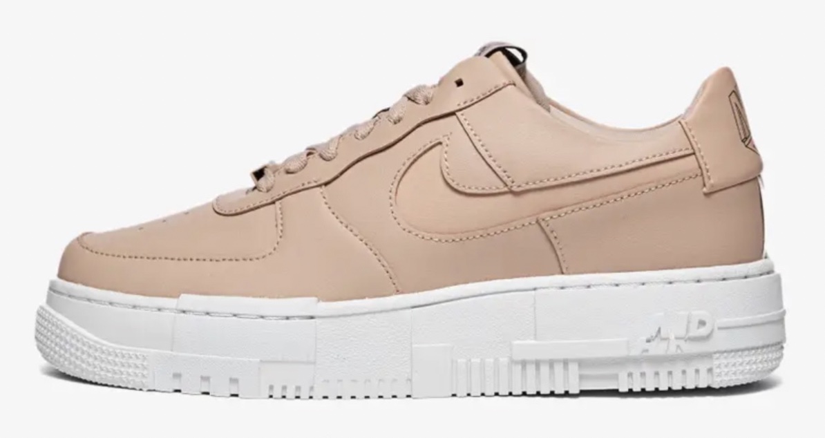 - Nike Air Force 1 Pixel: la tomaia è in pelle bianca, con linee semplici e una texture leggera, per donare un look semplice e moderno. Un modello davvero molto comodo e leggero, con un nuovo logo, il doubré tridimensionale e lo Swoosh sagomato;