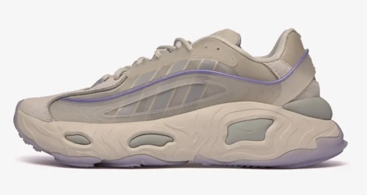 - Adidas Oznova: un modello basso e grigio, con tomaia in tessuto e suede, pannelli di gomma e caratterizzata da dettagli viola, chiusura frontale con lacci e suola in gomma.