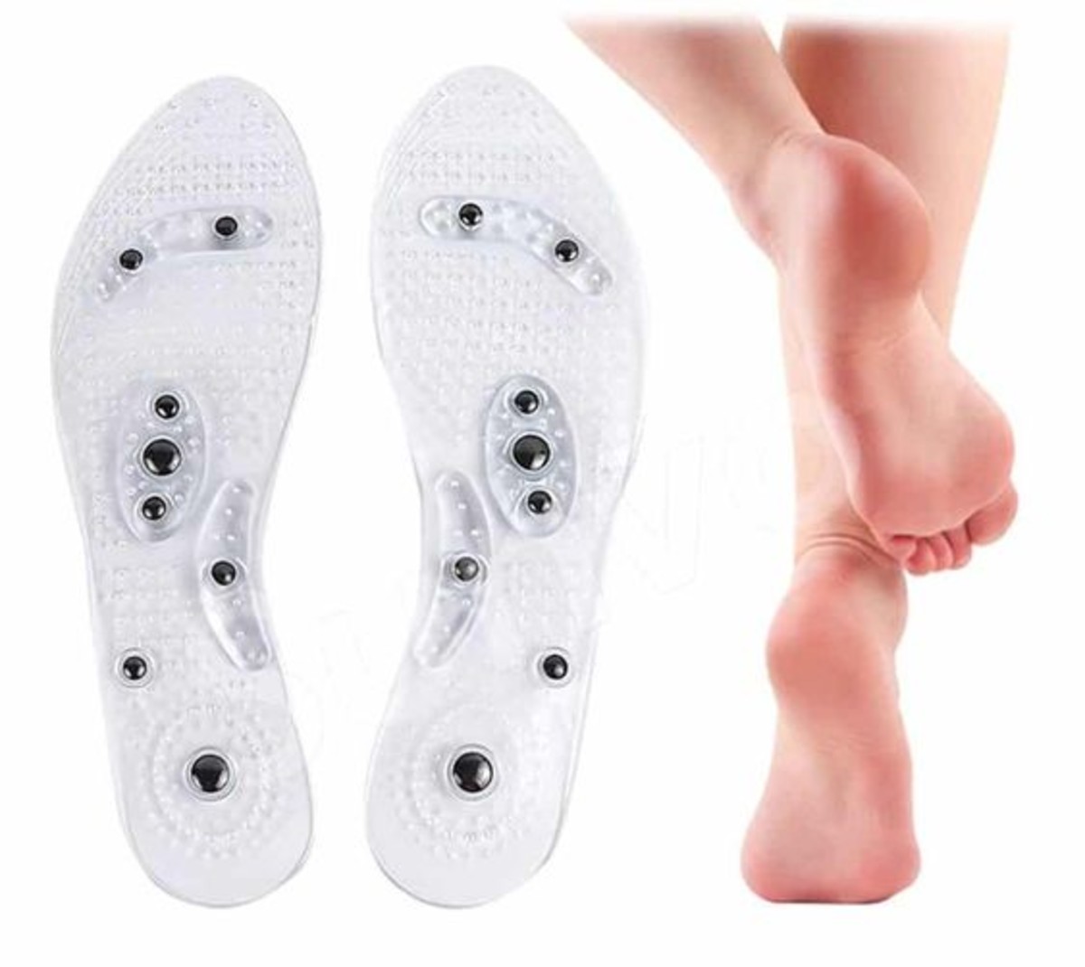 I magneti sono incorporati in modo da creare un corpo magnetico in spostamento mentre si cammina. Il campo magnetico aiuta a mantenere e aumentare gli effetti e i benefici. Le solette magnetiche forniscono una sensazione rinfrescante di massaggio ai piedi sia mentre si cammina, ma anche quando si è in piedi o seduti.