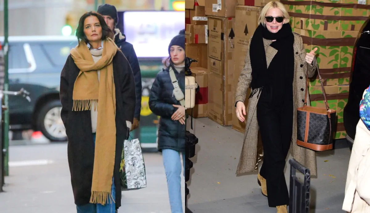 Un trio di capi pieni di colore e molto carismatici, abbinati a leggings neri e sneakers bianche. Vestire in modo elegante ma anche in modo pesante per l’inverno non è sempre facile. Katie Holmes, specialista della moda cocoon, è famosa per i suoi look invernali che hanno sempre una gran classe, seguendo i trend più attuali. In uno dei suoi look recenti indossa il classico cappotto over taglio morbido in nuance moka con i jeans chiari e le sneakers etniche.