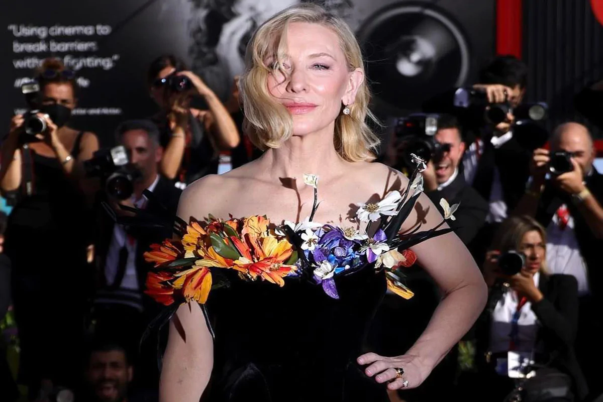 Attesa che si è fatta sentire anche per la protagonista assoluta della pellicola, la grande e meravigliosa Cate Blanchett, che ha raggiunto la laguna e ha sfoggiato decisa sul carpet.