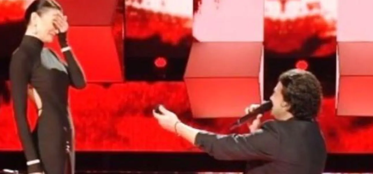 Se vuoi dirla, fai pure”. È a questo punto che Vittorio ha invitato la bellissima Stefania, che aveva ballato sul palco mentre lui cantava, a salire sul palco e, con la voce molto emozionata, ha dichiarato: “Io non sono perfetto, sono pieno di difetti ma quando avevo sete, tu mi hai dissetato. Ho cercato un sorriso e mi hai aperto il tuo cuore, ho voluto una casa e tu mi hai dato amore.