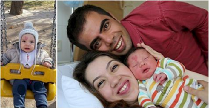 Succede in Turchia, nella città di Ankara, dove Murat Engin, 30 anni, e sua moglie Ceyda, 28 anni hanno dato vita al piccolo Çinar Engin. L’infermiera che è intervenuta al parto, assistendo la mamma, ha subito notato che quel faccino tenero nascondeva qualcosa di sensazionale. Insieme al padre che era con lei durante la pulizia del neonato dal sangue materno, hanno visto questo particolare arrossamento sulla fronte, tra l’attaccatura del naso e l’occhio destro.